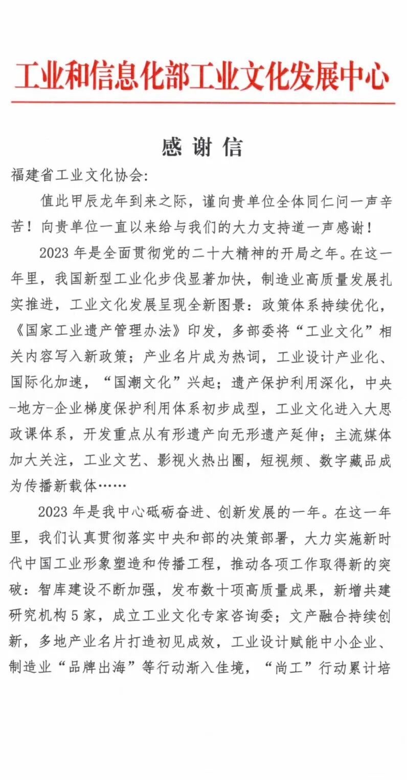 图为工信部工业文化发展中心多次向协会发的感谢信
